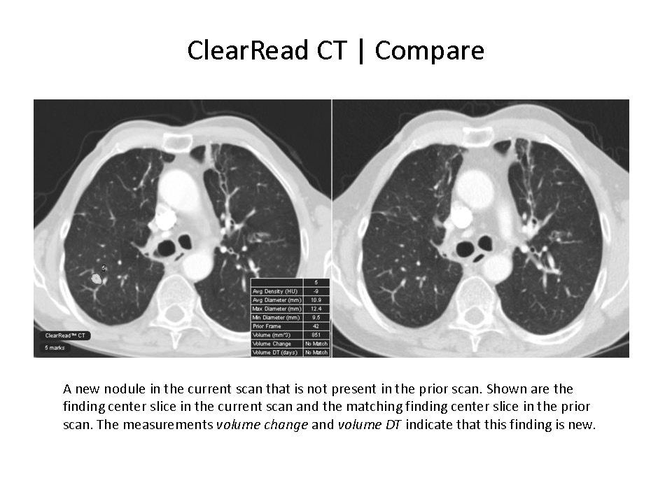 ClearRead CT Compare 是協助放射科醫師追蹤結節隨時間變化的系統。