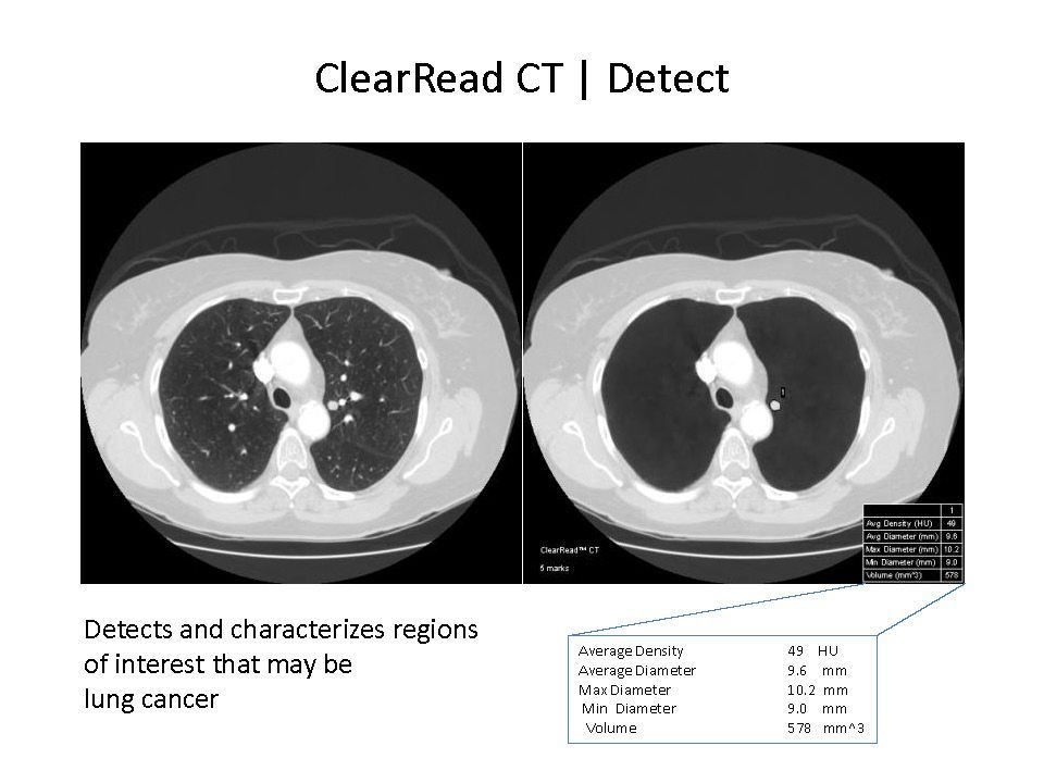 ClearRead CT可以在各種CT肺部掃描中操作;然而,該系統設計用於最佳化結節的檢測和定性。