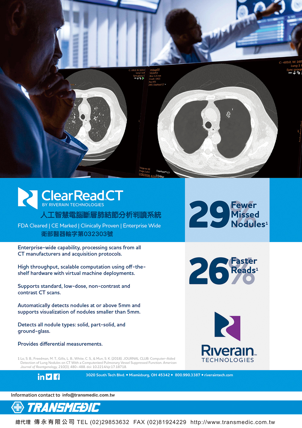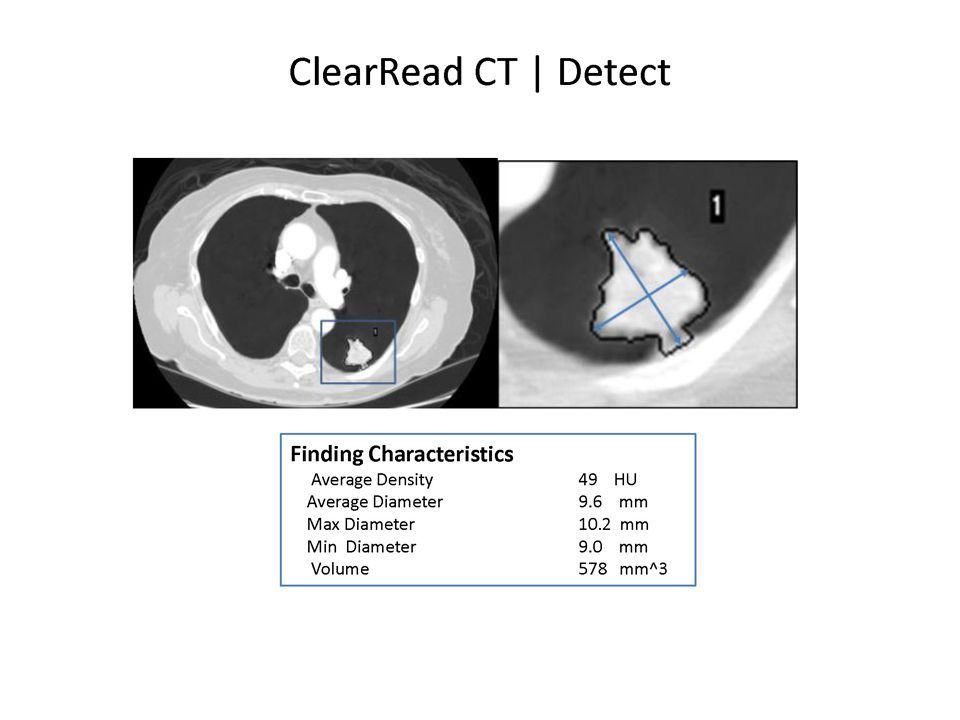 ClearRead CT Detect 是協助放射科醫師檢測胸部CT 影像系列內ROI 的系統。