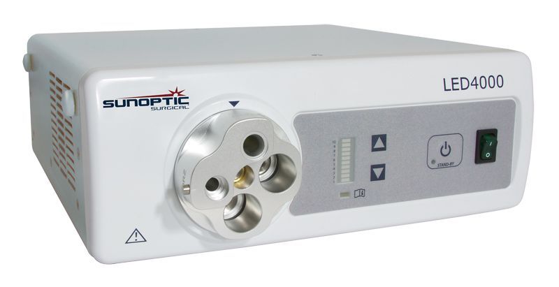 | Sunoptics Surgical LED4000 is a state-of-the-art LED Lightsource designed to provide light for Headlight and endoscopic procedures. The lumen output is comparable to many Xenon lightsources currently being used in endoscopy. The expected LED life of 30,000 hours eliminates the need to purchase replacement lamps, thus saving money in operational cost. |