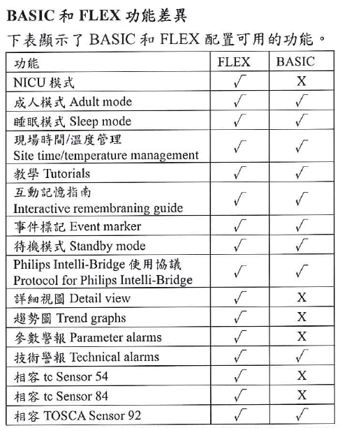 本產品的軟體提供兩個預先配置的參數集,稱為FLEX(完整功能)和BASIC(有限功能)。